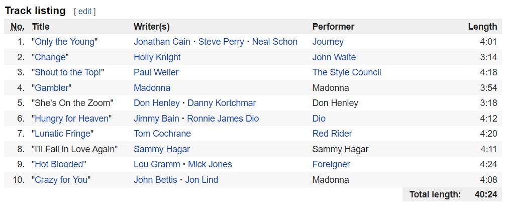 Photo credits: Warner Bros. Pictures, Paramount Pictures, Wikipedia (soundtrack list), CineMaterial (Italian movie poster).