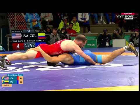 This video contains highlights from Zane Richards' Gold Medal winning match. He wrestled Olympian and 2x (now 3x) Pan Am Silver medalist Oscar Tigreros of Colombia. It turned out to be a two-minute and two-second techfall, 10-0. In the semifinals, Tigrero beat the Cuban. Richards beat former NCAA champion Darian Cruz, wrestling for Puerto Rico. The score of that match was 8-2.